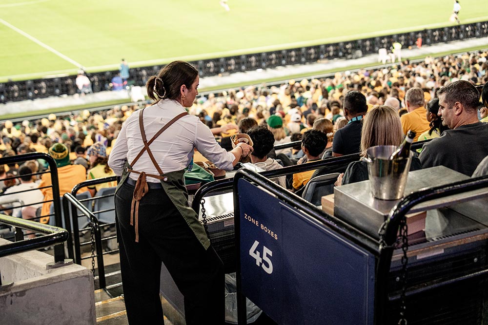 Enjoy casual hospitality in a dedicated Open Box with premium seating and food & beverage served to your seat.